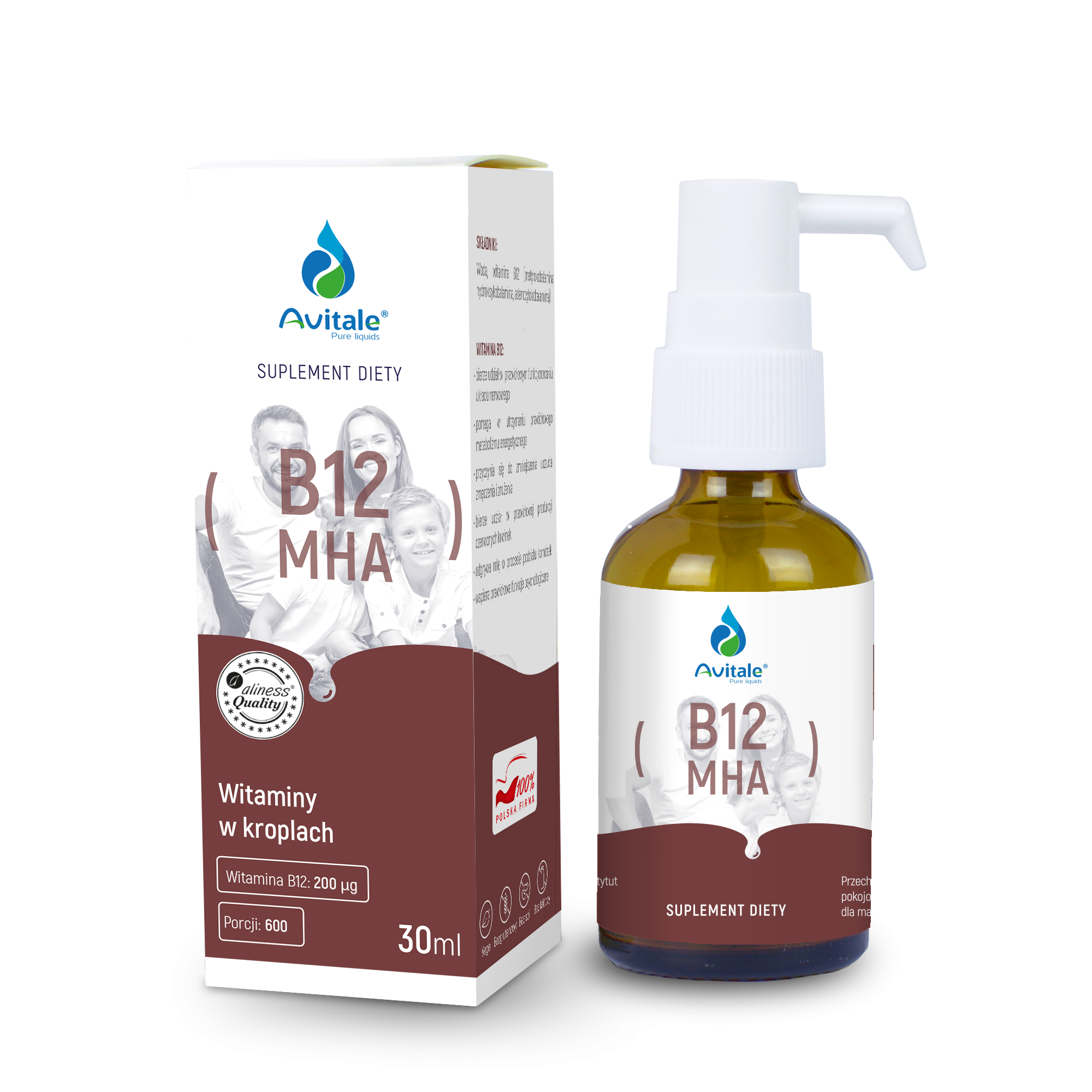 Avitale Witamina B12 MHA 200 µg to płynna forma witaminy B12 o wysokiej dawce, przeznaczona dla osób, które chcą zadbać o prawidłowy metabolizm energetyczny, układ nerwowy i ogólne samopoczucie w wygodnej, łatwo przyswajalnej postaci.