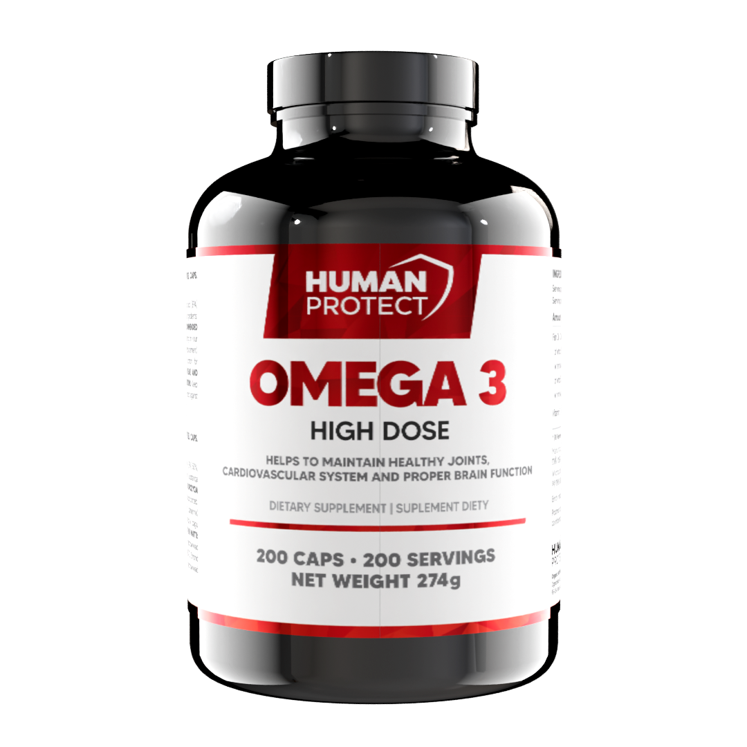 Human Protect Omega 3 High Dose – 200softgels Kwasy Tłuszczowe Omega-3 — wsparcie codziennej diety i aktywności fizycznej.