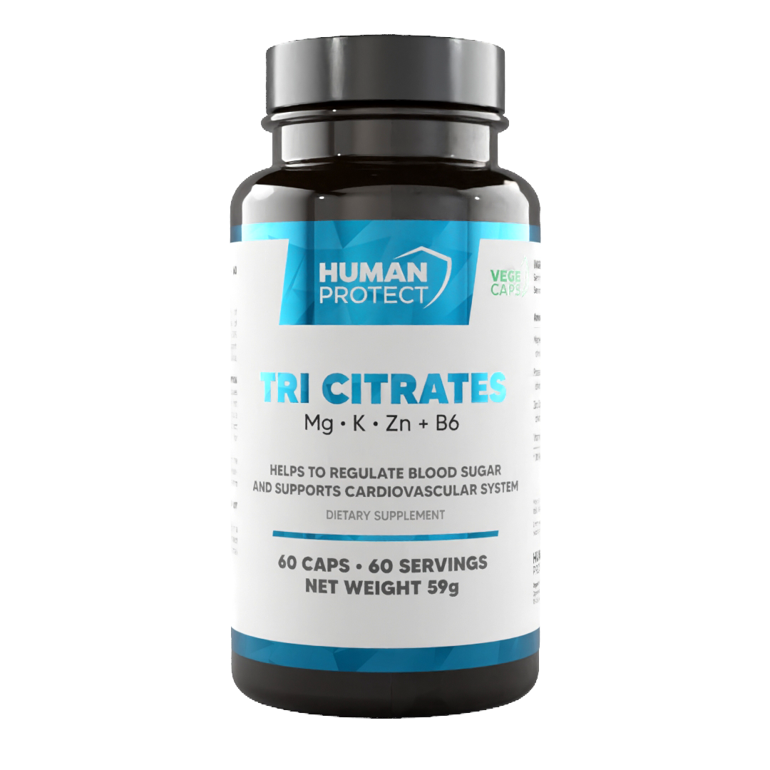 Human Protect Tri Citrates 60kaps. Cytrynian Potas Magnez Cynk — wsparcie codziennej diety i aktywności fizycznej.